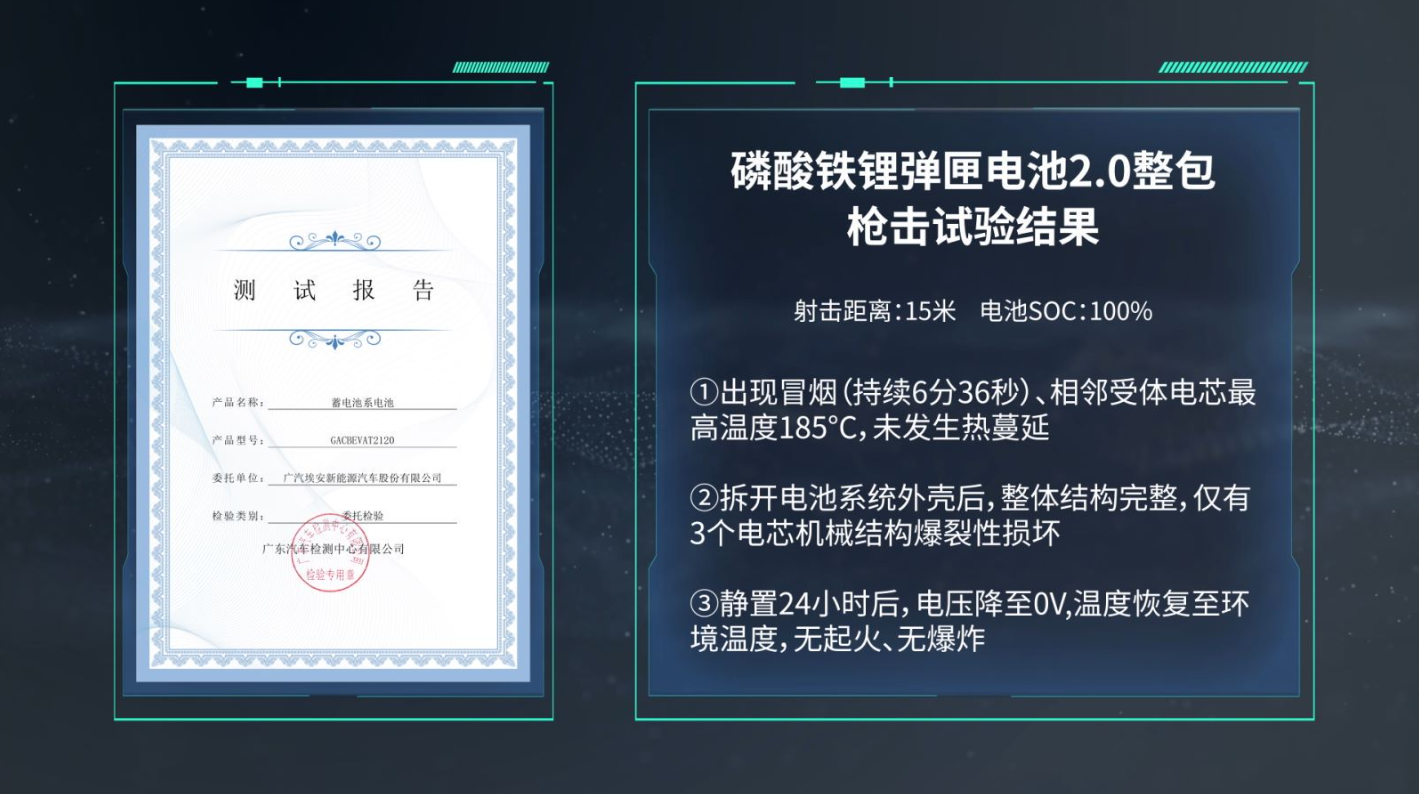 埃安品牌自成立以来始终将安全视为首要目标;追求安全永不妥协的精神深深烙印在每一个埃安人的心中,并在实际行动上得到了体现:官方数据显示,在弹匣电池1.0发布后,累计装车已达到40万辆,并且未发生一起自燃事件。这次枪击不着火的弹匣电池2.0毫无疑问会进一步提升埃安在电池安全领域的影响力。